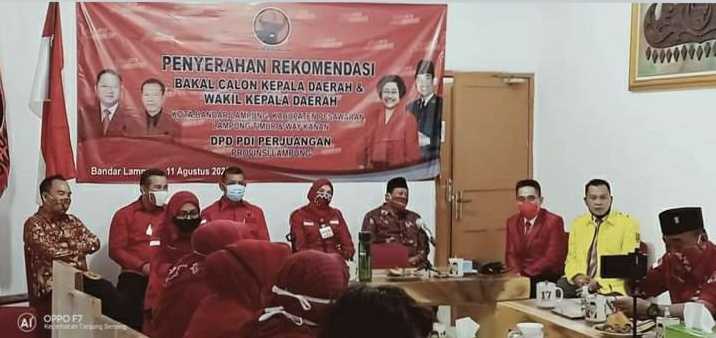 Dia menyebutkan, rekomendasi tersebut dibacakan oleh Puan Maharani mewakili Ketum PDIP Megawati Soekarno Putri melalui video teleconference. Dan diserahkan langsung ketua PDIP Lampung Sudin.